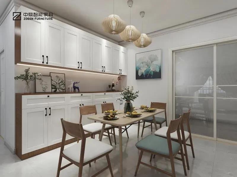 中鼎定制家具中,經常會把全鋁餐邊柜與全鋁餐桌、全鋁酒柜、全鋁展示柜、全鋁茶臺等組合在一起,美觀的同時,還不占地兒。尤其是全鋁餐邊柜的個性定制,顏值在線,也讓餐廳多了一些層次感和收納功能。