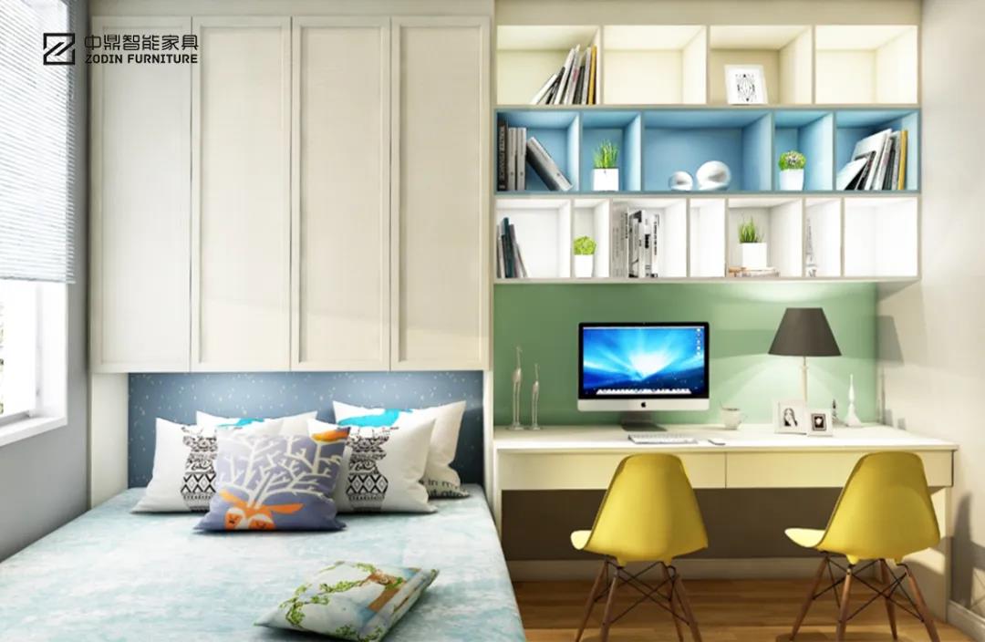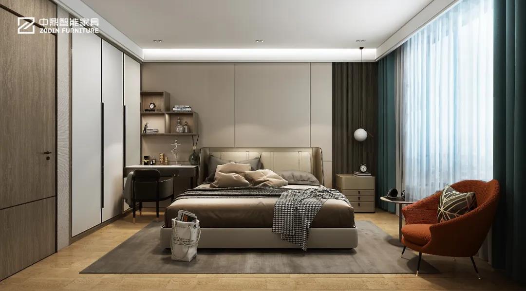 主臥家具包括全鋁衣柜、全鋁床頭柜、全鋁梳妝臺、全鋁床、全鋁書桌等等。中鼎全屋定制家具可以把這些功能集中在一個組合柜體上體現,節省大量空間和成本,尺寸設計更為準確,美觀實用為一體,讓家也變得更干凈整潔。